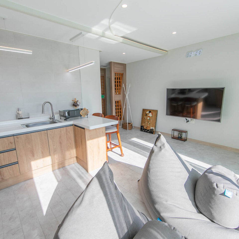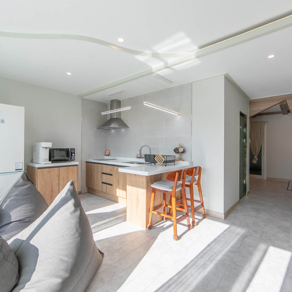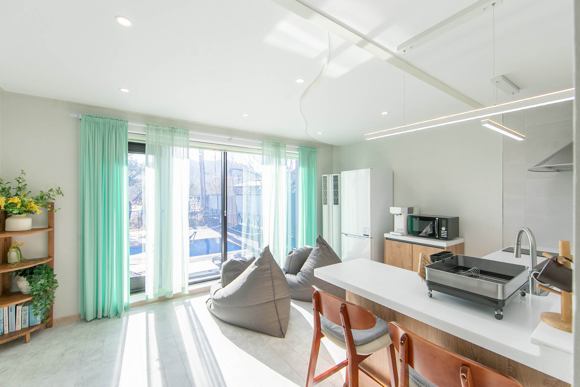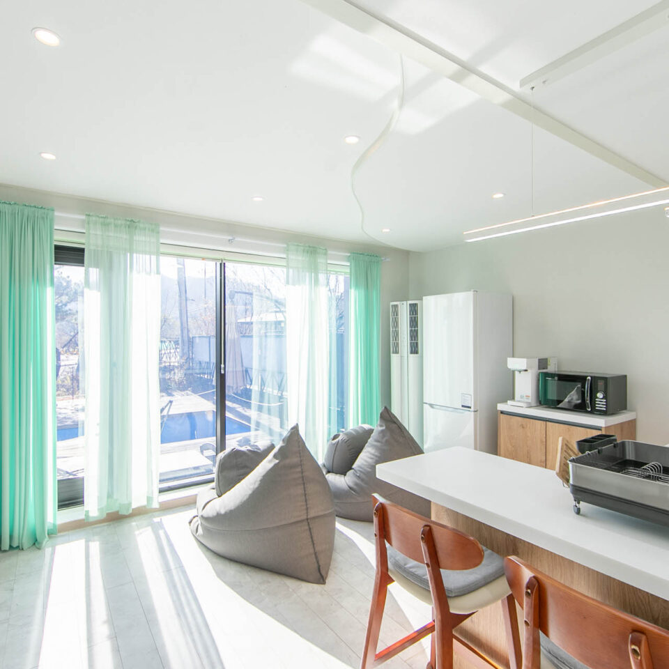 가족이 편안하게 머무를 수 있는 3개의 방과 넓은 거실이 있는 101호 입니다. 침대룸A(퀸1)+화장실1, 20평(약 66.0㎡), 스파시설보유,테라스바베큐가능 객실배치도STELLA 101STELLA 102STELLA 201STELLA 202 실시간 예약하기 ※ 인원 및 추가 요금 기준 2명~최대 4명 기준 인원 초과시 연령에 상관없이 인당 3만원 ※ 입실·퇴실 안내 입실 15:00 이후 / 퇴실 11:00 이전 ※ 구비시설 TV,침대,에어컨,냉장고,드라이기,취사도구,전기밥솥,전자레인지,핫플레이트,욕실용품,객실샤워실,스파시설 더보기